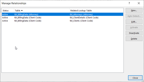 Bấm dữ liệu > công cụ dữ liệu > mối quan hệ để mở hộp thoại quản lý mối quan hệ.