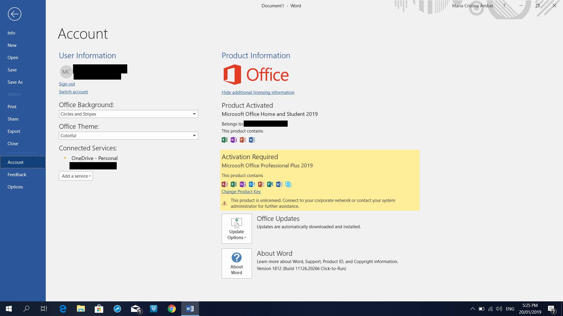 Nếu bạn đi tới File > Account trong chương trình Microsoft Office, bạn cũng sẽ thấy thông báo có nội dung “Activation required”.