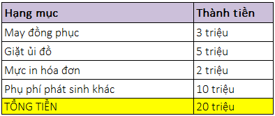 Vì thế bạn có thể hạch toán chi phí như sau để biết mình cần bao nhiêu vốn: