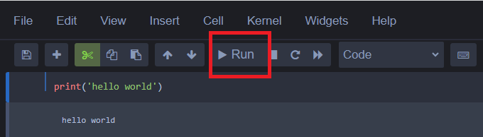 Để chạy mã, hãy nhấn vào nút "Run" ở thanh công cụ hoặc sử dụng tổ hợp phím Shift+Enter.